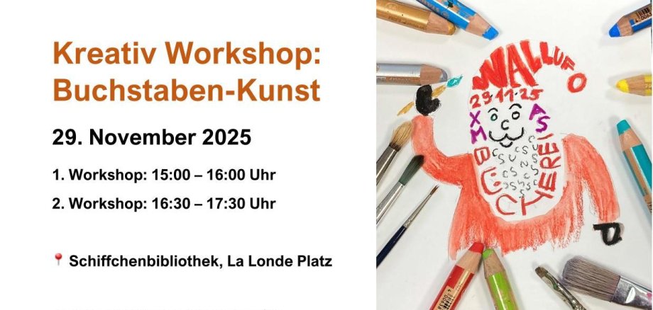 Kinder können hier alte Holzlettern aus dem Buchdruck verwenden, um mit Stempeltechnik einzigartige Wortbilder zu gestalten. Anschließend werden diese mit wasservermalbaren Buntstiften farbenfroh weiterverziert – so entstehen kleine, individuelle weihnachtliche Kunstwerke. ✨