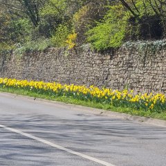 Die insgesamt 15 Sorten Narzissen im jetzt nicht mehr nur grünen Grünstreifen an der Hauptstraße werden zwischen Haselnußgasse und Tankstelle im Laufe der nächsten Zeit auch noch orangefarbene Blüten hervorbringen. Doch ob Gelb, Weiß oder Orange – „Die bunten Farben wirken einfach freundlich und heben die Stimmung“, freut sich Bürgermeister Stavridis für die Bürgerinnen und Bürger seiner Gemeinde. „Da lässt die warme Frühlingssonne sicherlich auch nicht mehr lange auf sich warten.“
