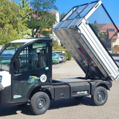 „Das von uns erstellte Bauhofkonzept von 2021 hat deutlich gemacht, dass es im Wallufer Baubetriebshof langfristig gesehen Beschaffungsbedarf an einem alltagstauglichen Pritschenwagen mit Kippfunktion gibt“, so Bürgermeister Nikolaos Stavridis. „Zur Unterstützung des Bauhof-Teams, an das immer mehr Aufgaben herangetragen werden und für das es heißt, stets mobil zu sein, schien uns hier ein Elektronutzfahrzeug am geeignetsten.“