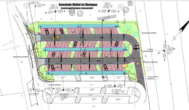 Die baulichen Maßnahmen zur Erweiterung des Parkplatzes, die bereits vor mehr als dreieinhalb Jahren beschlossen wurden, um die prekäre Parksituation in Walluf zu entschärfen, starteten Ende April dieses Jahres. Mit der neuen Schleife verfügt die Anlage nun über zwei weitere Parkreihen mit jeweils 18 Plätzen.