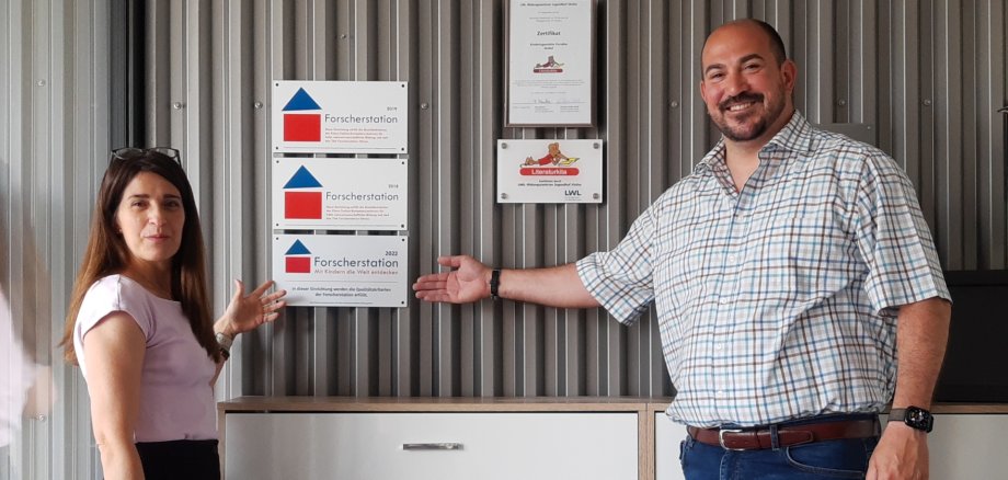 Auch Bürgermeister Nikolaos Stavridis freut sich über die Forscherstations-Plakette: „Frühe naturwissenschaftliche Bildung wird immer wichtiger. Und mit der Auszeichnung wird nach außen sichtbar, dass dieses Thema in der Kita Paradies eine große Rolle spielt.“
