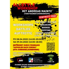 Unter dem Leitthema „Hip-Hop“ wird ein jugendkulturelles Programm gestaltet, was wesentlich durch Andreas Maintz, professioneller Tanztrainer und Choreograph aus Aachen, mitgetragen wird in einer Kombination aus Breakdance, Graffiti, Rap, BMX/ Biken, Skaten. Im Schwerpunkt Breakdance werden sich Programmbausteine finden wie Workshops, Auftritte und Battles, immer aktiv gestaltet und geeignet zum Mitmachen. Im Weitern finden sich Mitmachaktionen, Interaktivangebote, Wettbewerbe und verschiedene Kurzpräsentationen.