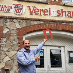 Der Buchstabe „N“ im Schriftzug des Oberwallufer Vereinshauses war vor geraumer Zeit witterungsbedingt in zwei Hälften zerbrochen und abgefallen. „Der Anblick des Vereinshaus ohne „N“ war mir bereits im Wahlkampf ein Dorn im Auge“, so Bürgermeister Nikolaos Stavridis, der sich sehr freut, dass hier nun Abhilfe geschaffen werden konnte.