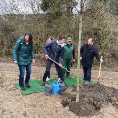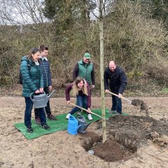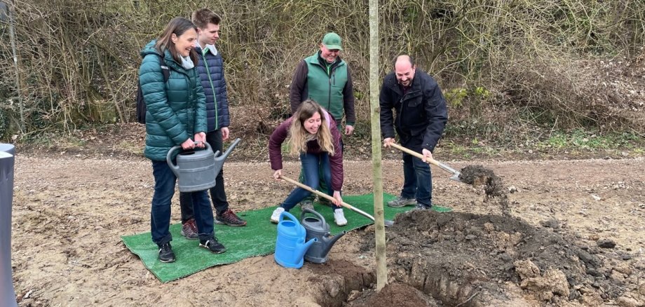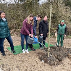 Die neuen Bäume wurden nun am 15. Februar 2023 gemeinsam mit den Eigentümern des an den Fußweg angrenzenden Grundstücks gepflanzt und angegossen. Bürgermeister Nikolaos Stavridis nahm dabei höchstpersönlich Spaten und Gießkanne zur Hand. „Die unwetter- und sanierungsbedingte Rodung der alten Bäume im Bereich des Paradies ist natürlich eher traurig, aber umso mehr freue ich mich zu sehen, wie Walluf mit immer mehr neuen Bäumen wächst und gedeiht. Dies sind bereits die Bäume Nummer 51 bis 54, die seit Beginn meiner Amtszeit offiziell in Walluf gepflanzt wurden, viele davon durch Spenden“, führt Bürgermeister Stavridis im Rahmen der Pflanzaktion voller Freude aus.