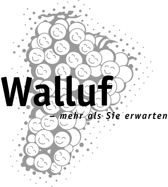 In den letzten Jahren trat die Gemeinde Walluf vornehmlich mit dem roten Wappen auf, das bisherige Logo trat immer mehr in den Hintergrund. Denn die lachenden Trauben in zartem Grau, die 1997 unter Bürgermeister Jürgen Knode (1996-2002) das Licht der Welt erblickten, sind über ein viertel Jahrhundert später nicht mehr ganz zeitgemäß.