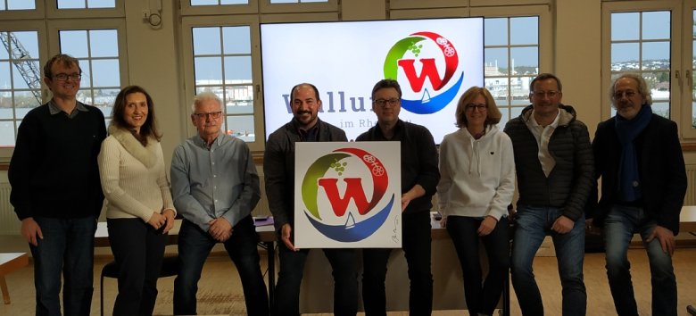 Ein rotes W für Walluf – rot, wie das Wappen der Gemeinde Walluf mit den beiden kreuzverbundenen Doppelrädern, die auch im roten Band des neuen Logos erscheinen. Grün wie die Weinreben, die in und um Walluf das Landschaftsbild prägen. Und das alles direkt am blauen Rhein, auf dem in Walluf ein Segelboot nicht fehlen darf. Denn seit Beginn des 20. Jahrhunderts ist der Segelsport auf dem Rhein, an dessen Ufer Walluf liegt, hier nicht mehr wegzudenken und der Segelhafen ein fester Bestandteil im Wallufer Alltagsleben.