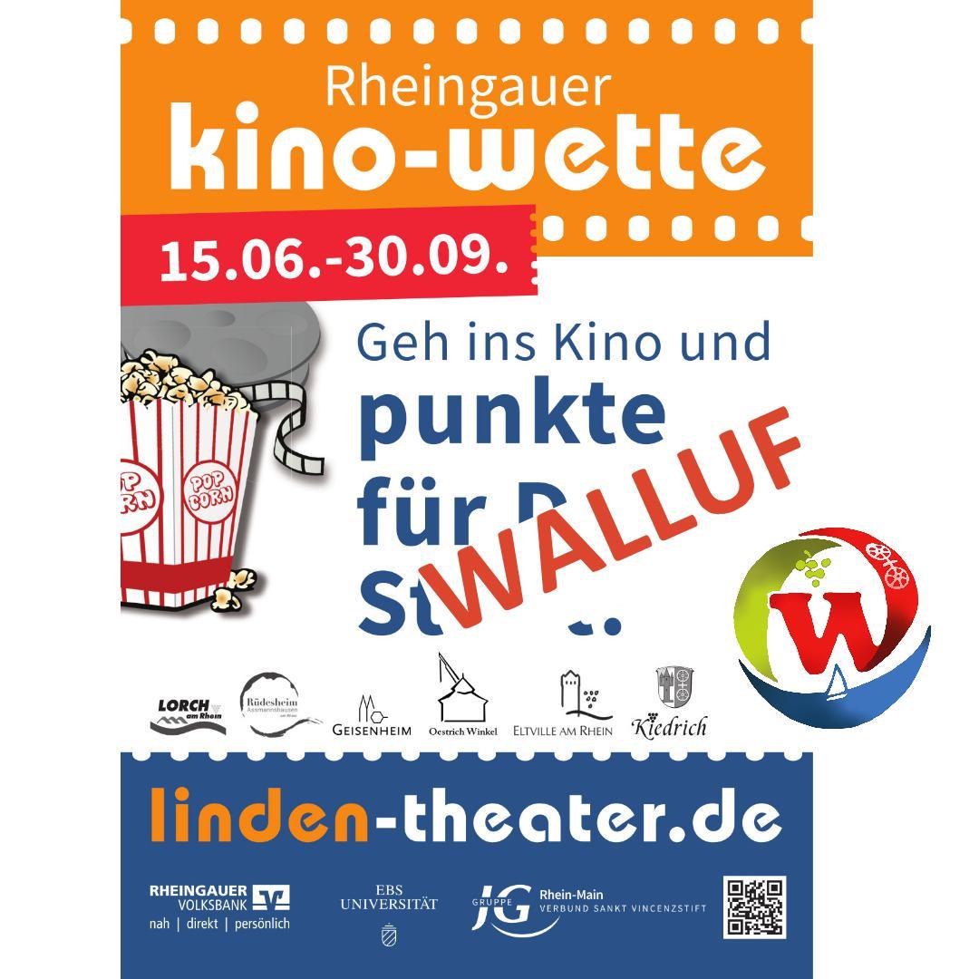 Walluf nimmt an der Rheingauer Kinowette teil. Das heißt, ganz Walluf ist dazu aufgerufen, vom 15. Juni bis zum 30. September ganz oft nach Geisenheim ins Lindentheater ins Kino zu gehen.