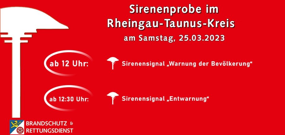 Die Überprüfung der Feuerwehr- und Katastrophenschutzsirenen wird im Rheingau-Taunus-Kreis regelmäßig an zwei Terminen im Jahr durchgeführt – am letzten Samstag im März sowie am zweiten Donnerstag im September.