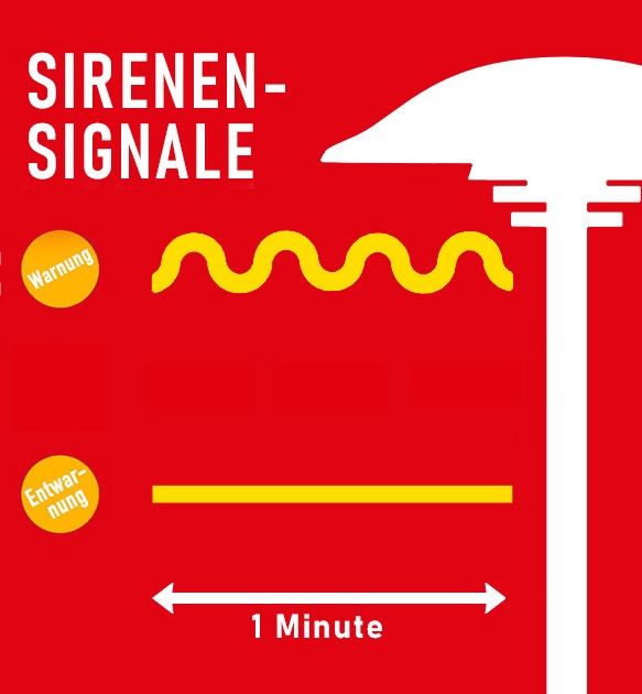 Im Rahmen der Sirenenprobe wird um 12:00 Uhr zunächst das Signal „Warnung der Bevölkerung“ ausgelöst. Hierbei handelt es sich um einen einminütigen auf- und abschwellenden Heulton. Beim Ertönen dieses Signales außerhalb einer Überprüfung wird die Bevölkerung gebeten, Rundfunkgeräte einzuschalten und auf Durchsagen zu achten oder sich mittels entsprechender WarnApps wie NINA, HeesenWarn oder KatWarn über die aktuelle Lage zu informieren.