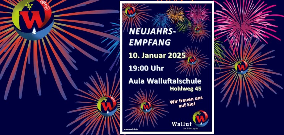 „Lassen Sie uns auf 2025 anstoßen und gemeinsam ins neue Jahr starten!“ Mit diesen Worten lädt Bürgermeister Stavridis die Bürgerinnen und Bürger zum Neujahrsempfang der Gemeinde Walluf am 10. Januar 2025 um 19:00 Uhr in die Aula der Walluftalschule im Hohlweg 45 ein. Dann heißt es diesmal bereits am Freitag: Auf ein Neues! „Wir freuen uns auf Sie!“