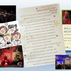 15) Ab November stand Walluf ganz im Zeichen der herannahenden Weihnacht: Die Martinsumzüge und der Wallufer Weihnachtsmarkt fanden statt und zahlreiche Vereine öffneten ihre Tore zur Teilnahme am beweglichen Adventskalender. Es gab ein besonderes Weihnachtskonzert der Chorgemeinschaft und das Weihnachtssingen der Männerchöre in Oberwalluf. In großer Zahl folgten die Walluferinnen und Wallufer der Einladung zum Krippenspiel in der Reithalle.