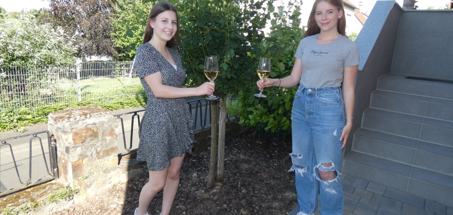 Stella Fries (links) und Lilly Scherer (rechts) freuen sich auf ihre neuen Aufgaben als Wallufer Weinkönigin und Weinprinzessin.