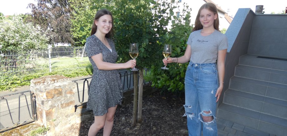 Stella Fries (links) und Lilly Scherer (rechts) freuen sich auf ihre neuen Aufgaben als Wallufer Weinkönigin und Weinprinzessin.